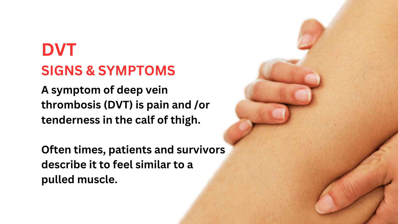 Let your doctor know right away if you have any signs of DVT or PE (pulmonary embolism):